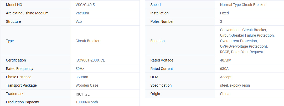 Vákuový obvod VSG/C-40.5 Vákuový istič na bočnom obvode je nový typ troch fáz 50 Hz podľa jedinečného koncepcie koncepcie a kombinovaný s dopytom a vývojom na trhu, menovité napätie vnútorného rozvádzača 40,5 kV, môže byť poskytnutý pre priemyselné a banské podniky, elektrárňa a ochrana elektrického vybavenia a je vhodné pre funkciu pre častú činnosť a je vhodné pre častú činnosť.