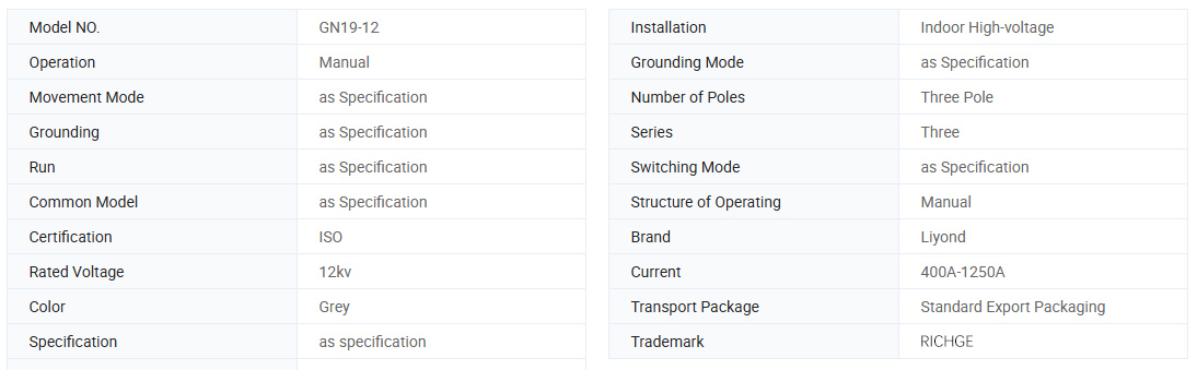 Vnútorné vysokonapäťové vypínače série GN19-12, 12C (ďalej len odpojovače) sú vnútorné zariadenia s menovitým napätím 12kV, trojfázový AC 60Hz a používajú sa na delenie a uzatváranie obvodov pri napätí a bez záťaže.