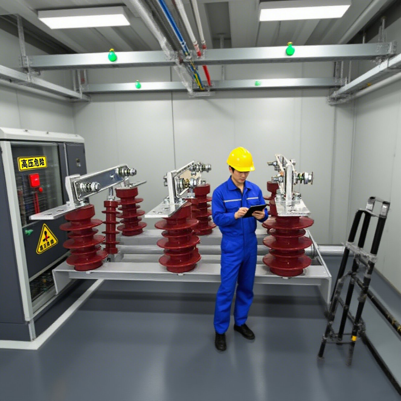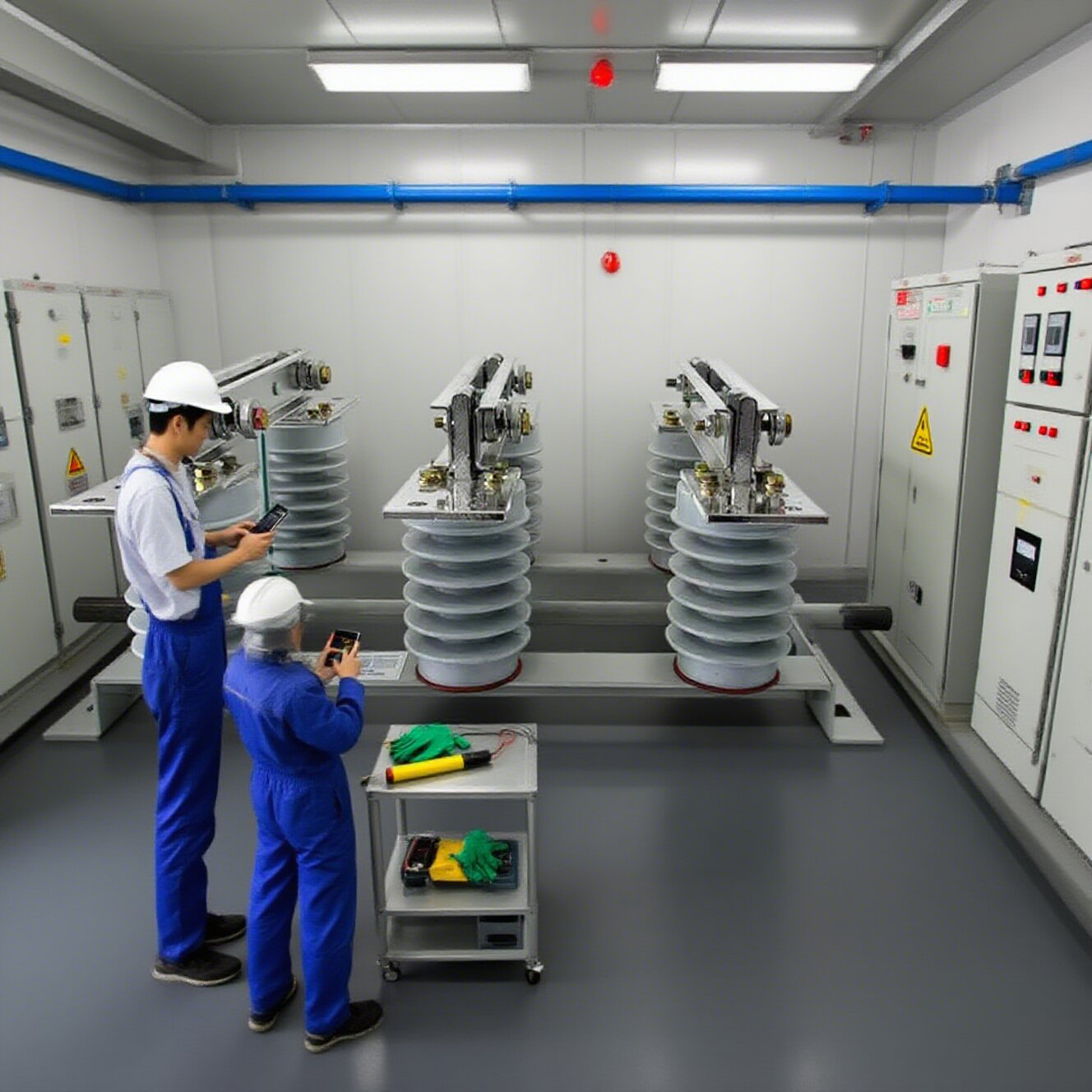Izolačný spínač Rotary v interiéri GN30-12 je nový typ izolačného spínača s rotačným kontaktným nožom. Hlavnou štruktúrou je, že horné a dolné roviny trojfázového spoločného podvozku sú fixované dvoma sadami izolátorov a kontaktov a spínač je otvorený a uzavretý otáčaním kontaktného noža.