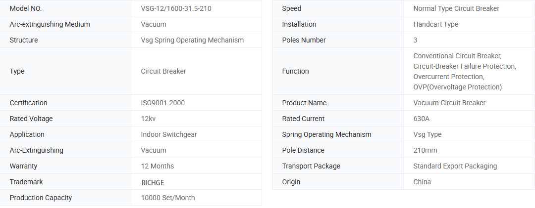Vnútorný vákuový obvod VSG-12 Vnútorné napätie Vysoko napätia Používa pružinu na skladovanie energie. Operačný mechanizmus je možné prevádzkovať dvoma spôsobmi, manuálnou a elektromotívnou prevádzkou, charakteristiky sú podľa GB1984-2003 vysoký napätie AC Casher, JB3855-1996 3,6-4,5 kV v interiéri AC s vysokým napätím AC s vysokým voltaovým prielomovým obvodom AC prerušovača AC s vysokým voltaovým prielomovým obvodom AC s vysokým voltaovým prielomom s vysokým obsahom volta