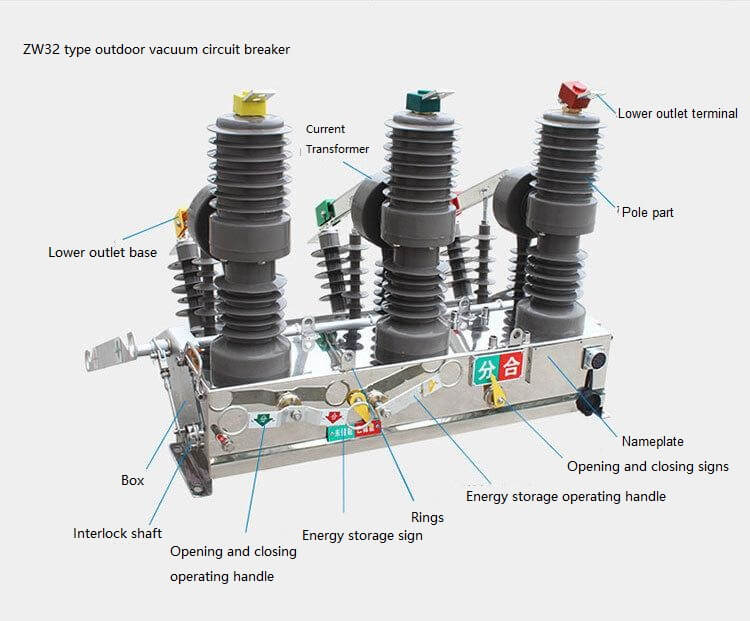 ZW32-12 Outdoor MV vákuový istič je vonkajším distribučným zariadením s menovité napätie 12 kV, trojfázové AC 50 Hz. Používa sa v distribučnom systéme rozvodní a priemyselných a ťažobných podnikových podnikov na ochranu a kontrolu používania. Používa sa tiež vo vidieckych miestach energie s častou prevádzkou na prelomenie a zatváranie záťažového prúdu a cez prúdový prúd a prúdový prúdový prúd systému skratov.