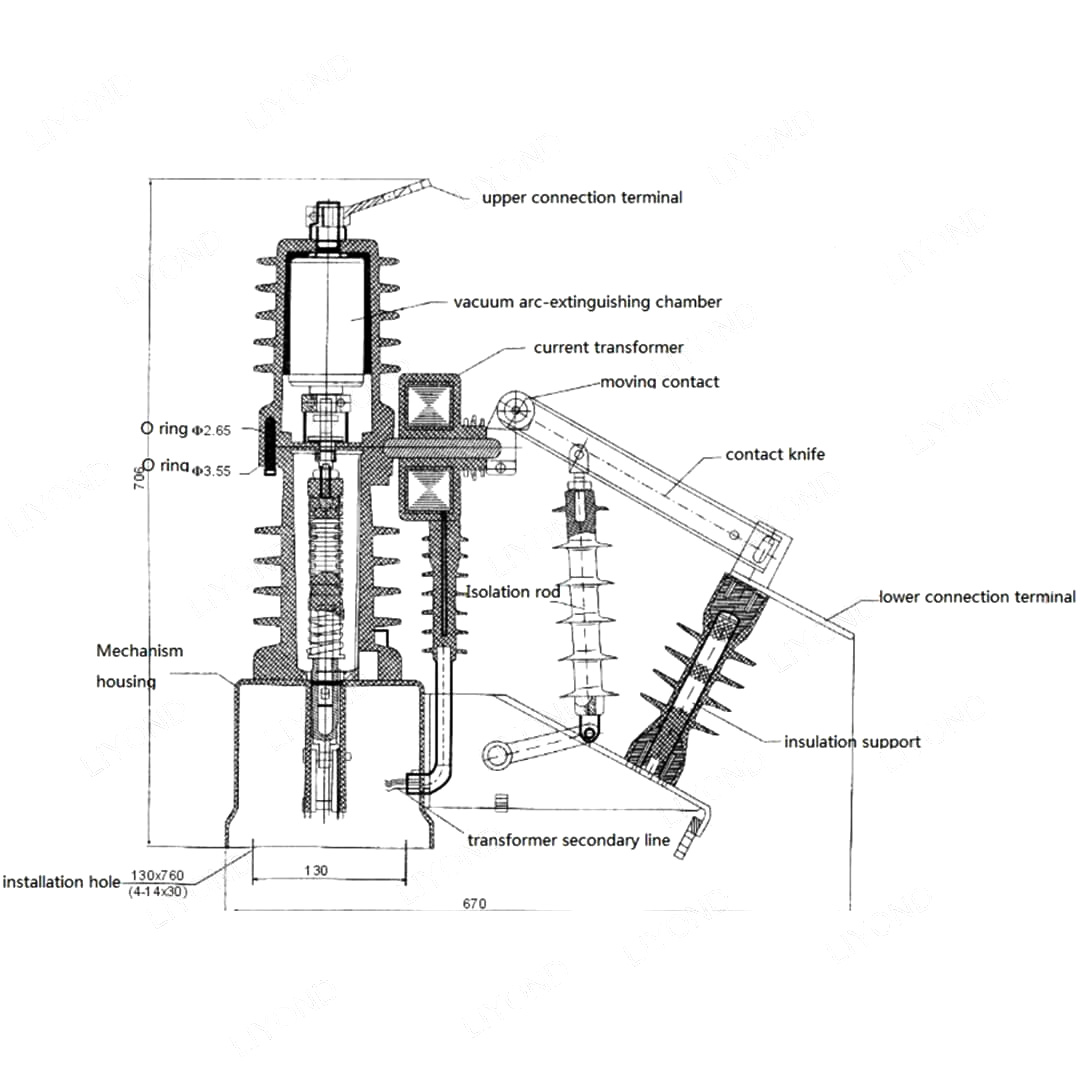 Izolácia prerušovača vákua prijíma silikónové gumové puzdro s dlhšou životnosťou, vyššou spoľahlivosťou, dobrým odporom počasia, vhodnou pre prepravu, dobré hodnotenie. Prevádzkový mechanizmus prijíma miniaturizáciu, vysoko spoľahlivý mechanizmus prevádzky na pružine, má výhody jednoduchej štruktúry, mechanickej životnosti až do 10000 -krát.